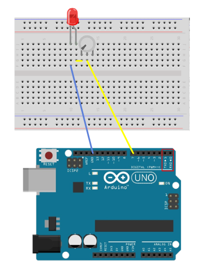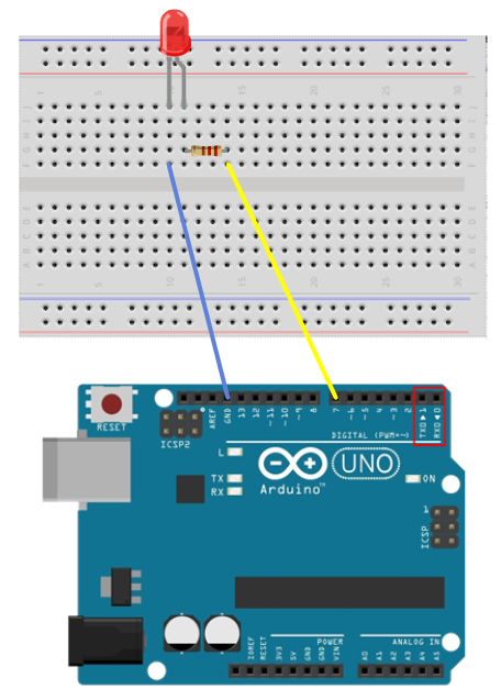 아두이노 구성에서 7번 디지털 핀에 LED를 연결했기 때문에 7로 핀연결을 정의하고 LED의 특성 중 HIGH는 불을 켠다. LOW는 불을 끄는 것이라고 생각한다.