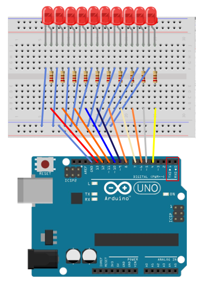 이번에는 마지막 LED 예제이니 LED도 10개 정도 사용해보자!
